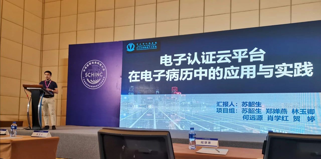 網證通憑借多年在醫療行業的默默耕耘和付出,研發出系列基于移動CA數字證書服務、數字簽名服務器、移動電子簽章系統和時間戳服務系統等核心產品,提供在線移動實名身份認證、數字簽名、數據加密、時間戳、電子簽章服務,圍繞“可信身份、可信行為、可信數據和可信時間”搭建互聯網醫院移動電子簽名平臺應用,實現互聯網醫療信息系統的可信業務環境建設需求,贏得業界多方客戶好評。作為使用我司電子認證數字證書產品超過13年的代表客戶,中山市人民醫院蘇韶生主任在大會作了題為《電子認證云平臺在電子病歷中的應用與實踐》的主題演講,分享了電子認證云平臺在醫院電子病歷醫護移動認證簽名、患者簽名、互聯網醫院等創新應用實踐經驗和成效,所發表的論文榮獲大會“優秀論文獎”。