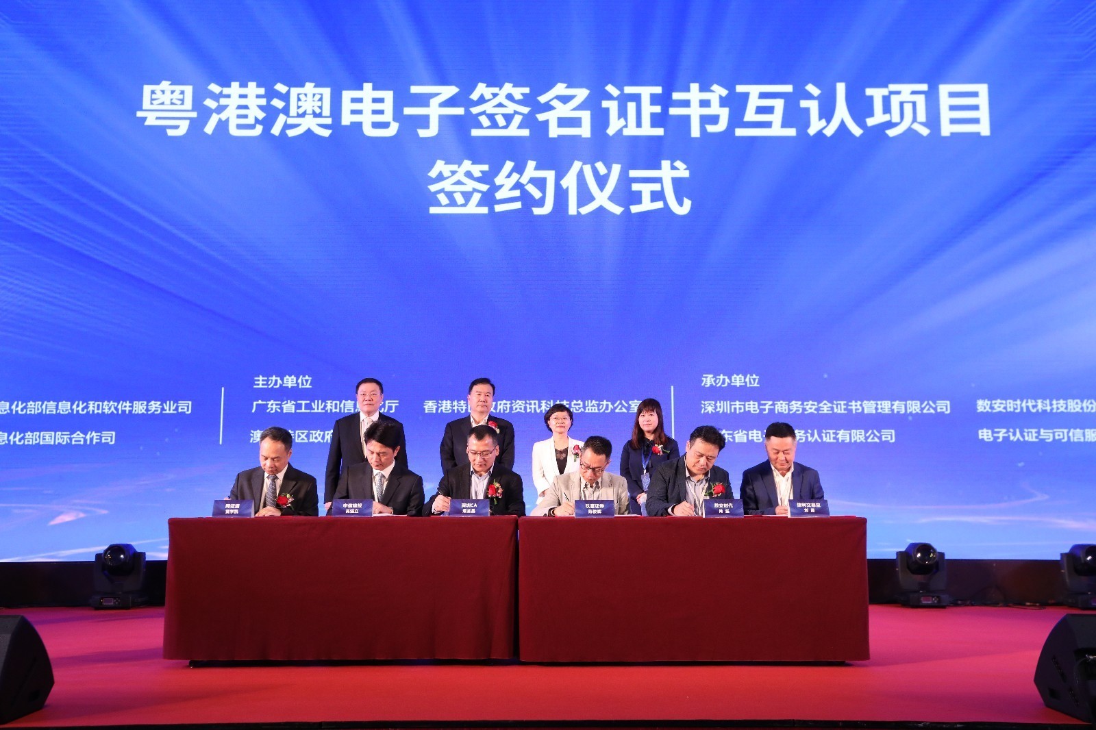 2019年11月15日,粵港澳大灣區(qū)電子簽名證書互認(rèn)工作組成立大會(huì)暨電子認(rèn)證發(fā)展論壇在深圳成功舉辦。大會(huì)認(rèn)真貫徹落實(shí)習(xí)近平總書記重要批示精神和《粵港澳大灣區(qū)發(fā)展規(guī)劃綱要》要求,以“智聯(lián)互認(rèn),無界灣區(qū)”為主題,探討電子簽名在金融、公共服務(wù)及商貿(mào)等領(lǐng)域發(fā)展應(yīng)用。本次大會(huì)在工信部信息化和軟件服務(wù)業(yè)司和工信部國際合作司指導(dǎo)下,由廣東省工業(yè)和信息化廳、香港特區(qū)政府資訊科技總監(jiān)辦公室和澳門特區(qū)政府郵電局主辦、廣東省電子商務(wù)認(rèn)證有限公司(簡(jiǎn)稱:“網(wǎng)證通NETCA”)等機(jī)構(gòu)具體承辦。