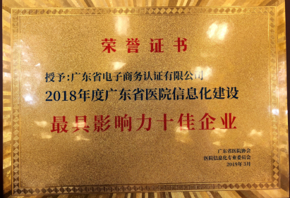 本次展會(huì),網(wǎng)證通同電信、聯(lián)通、深信服等大型企業(yè)同臺(tái),獲得了大會(huì)頒發(fā)“2018年度廣東省醫(yī)院信息化建設(shè)最具影響力十佳企業(yè)”的榮譽(yù)。