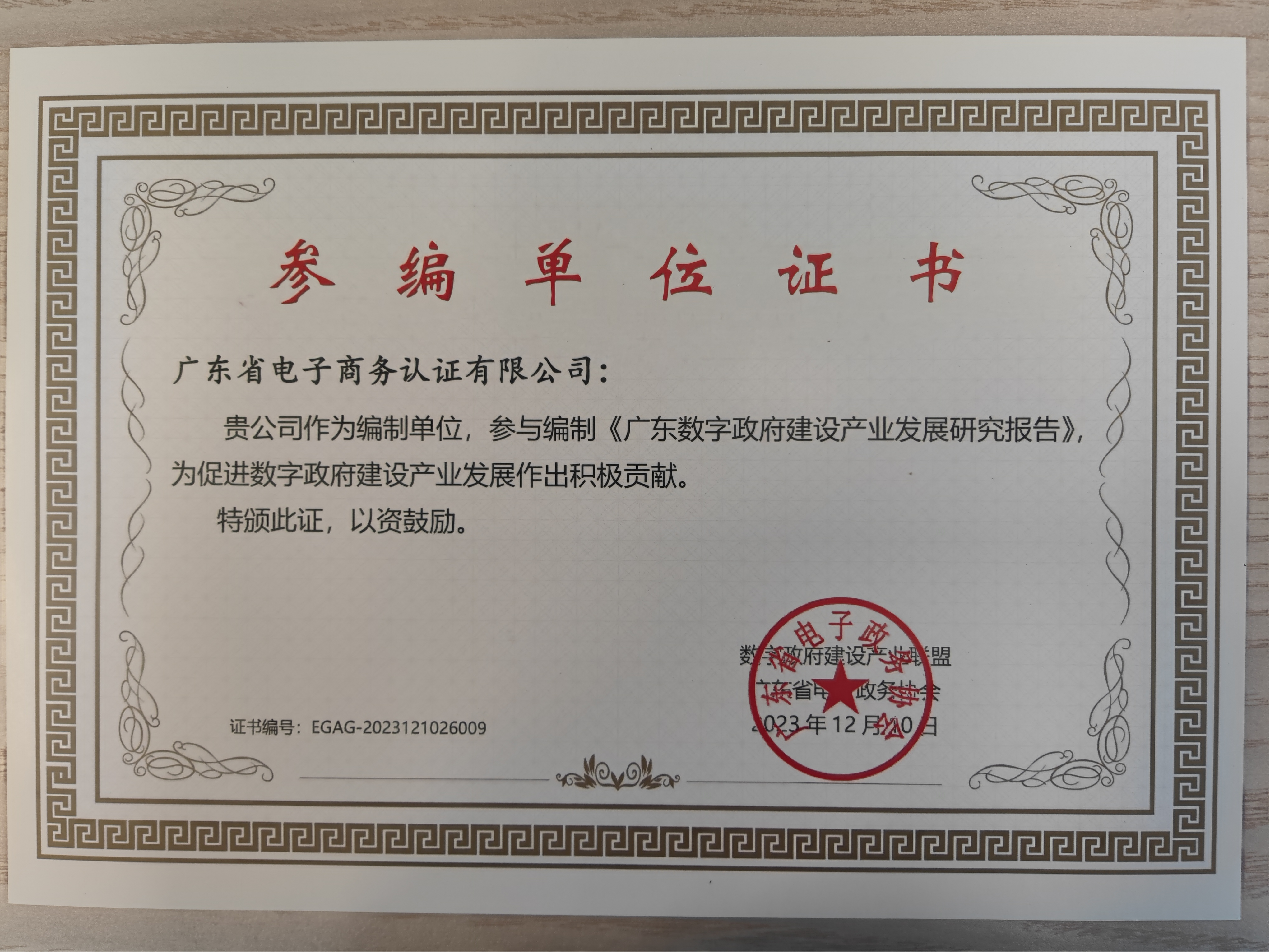 此次博覽會上,《廣東數字政府建設產業(yè)發(fā)展研究報告》正式發(fā)布。網證通作為主要參編單位參與發(fā)布會并領取參編證書。