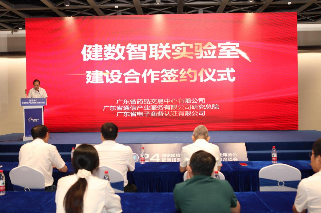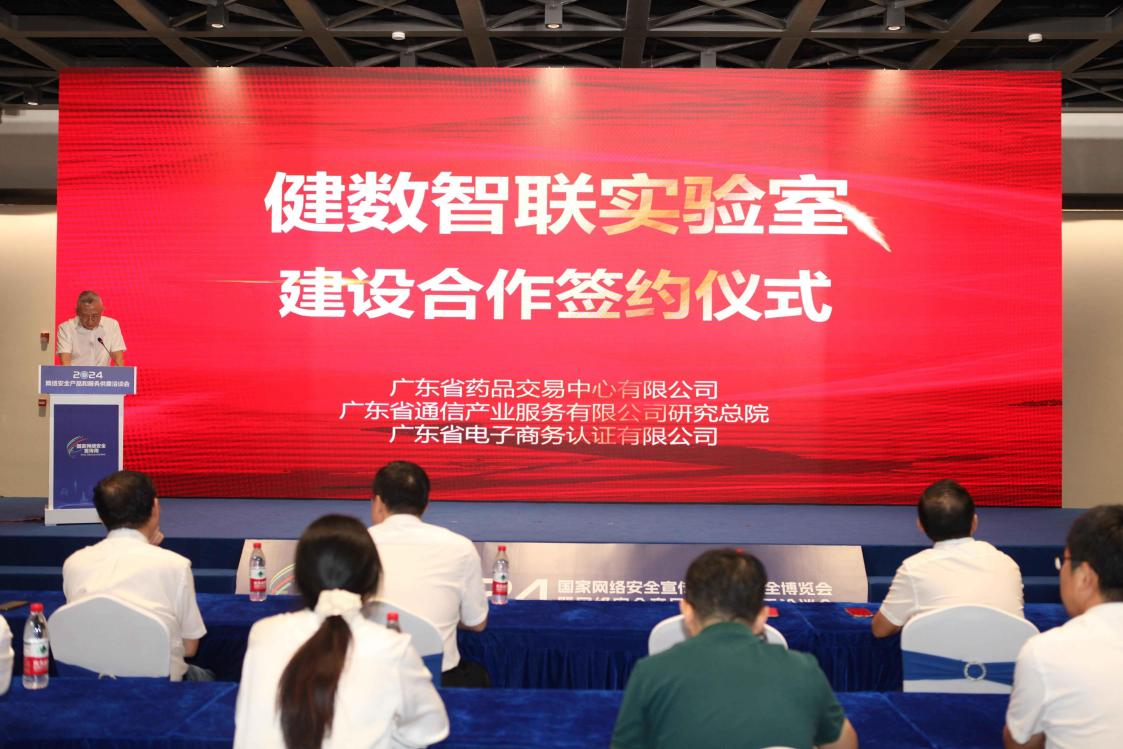 2024年9月10日,廣東省藥品交易中心、廣東省通信產業服務有限公司研究總院、廣東省電子商務認證有限公司舉行了隆重的健數智聯實驗室建設合作簽約儀式。廣東省藥品交易中心總經理盧舉、副總經理陸濤、廣東省通信產業服務有限公司研究總院副院長李延華、廣東省電子商務認證有限公司總經理肖磉等出席簽約儀式。