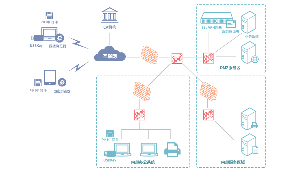 互聯(lián)網(wǎng)廣泛應(yīng)用的TCP/IP、HTTP等通信協(xié)議是基于明文傳輸?shù)模粽咴诰W(wǎng)絡(luò)的任何途經(jīng)節(jié)點(diǎn)均可竊聽和偽造。在關(guān)鍵的電子政務(wù)、電子商務(wù)等應(yīng)用中,難免會(huì)涉及用戶明感信息的傳遞,如何保證這些明感數(shù)據(jù)的防竊聽、防偽造,是信息系統(tǒng)建設(shè)的關(guān)鍵安全需求。