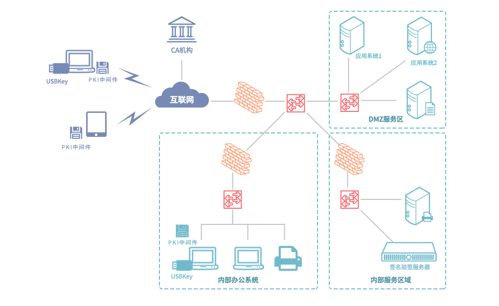本方案基于數字證書,解決用戶在訪問信息系統時進行身份鑒別的防假冒、防截獲、防重用等安全性問題。